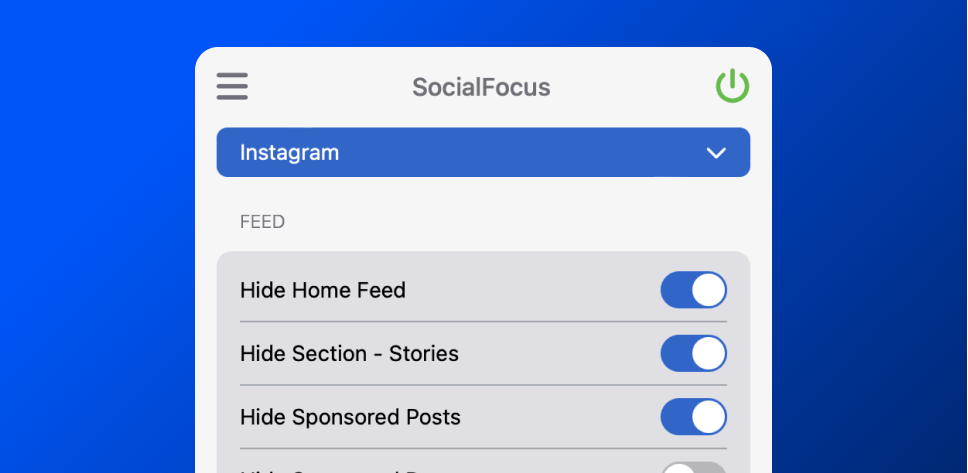 Been looking for something like this for years 🥲 I wanted to stop myself from getting distracted by social media feeds, without having to block the websites completely. For example, I wanted to be able to search for specific videos on YouTube (e.g. tutorials) without having to see the explore page or suggested videos. And I wanted to be able to view instagram messages, or links to specific posts, without getting distracted by my feed. This app allows these things easily! 🙏🏻
